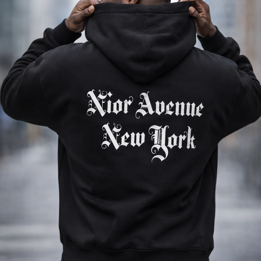 'Nior Avenue NEW YORK' Oversize Fleeced Hoodie (White)
